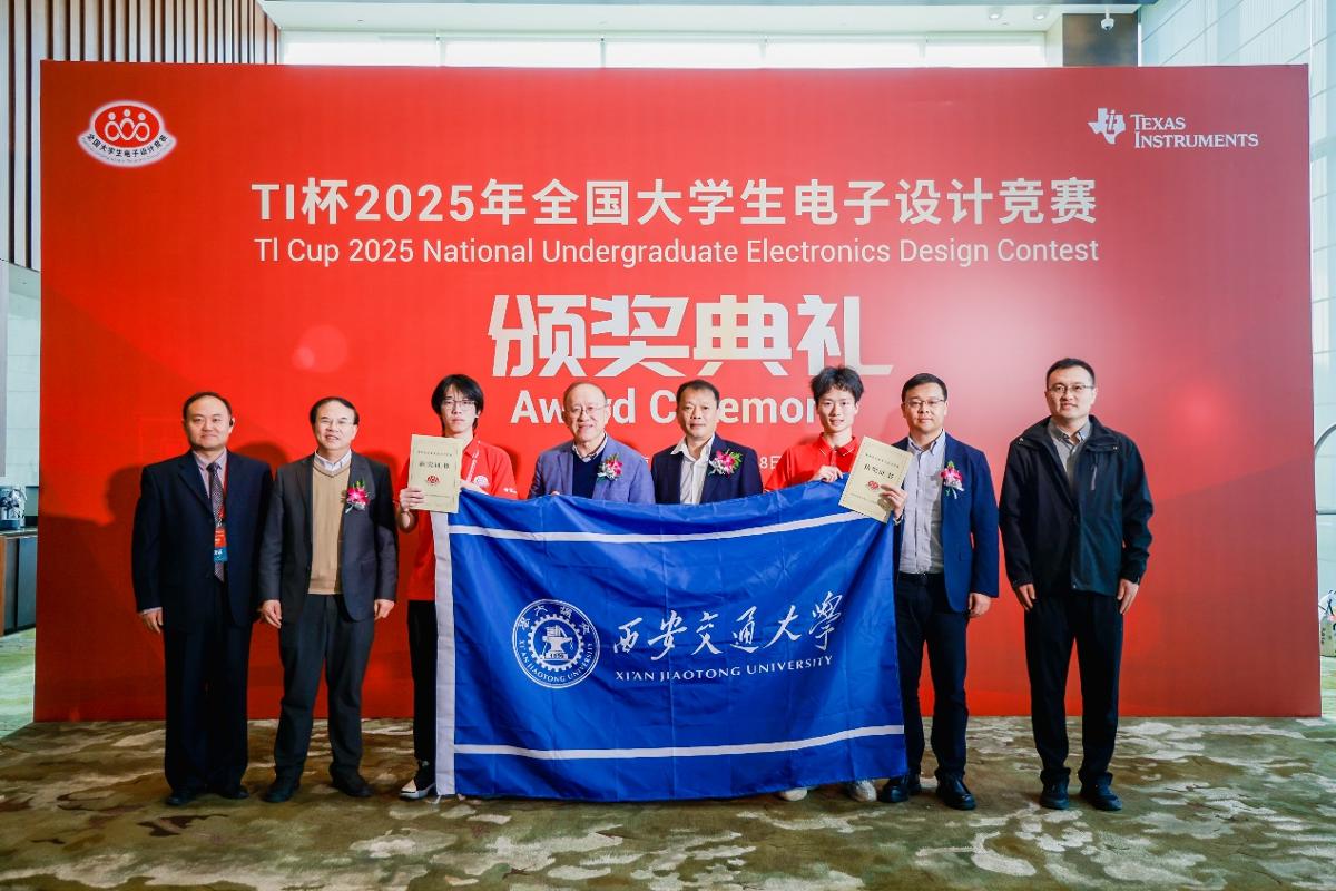 10月18日,2025年全国大学生电子设计竞赛(TI杯)颁奖典礼在北京举行,中国科学院院士、全国大学生电子竞赛组委会执行主任、西安交大电信学部主任管晓宏,西安交大党委副书记、纪委书记、国家监委驻西安交通大学监察专员马博虎,全国大学生电子设计竞赛组委会秘书长、西安交大电信学部罗新民教授,实践教学中心副主任陈立斌等出席大会并为获奖代表颁奖。德州仪器(TI)公司副总裁及中国区总裁姜寒,北京理工大学原副校长、全国大学生电子设计竞赛组委会副主任赵显利,电子科技大学党委常委、副校长孔令讲,全国大学生电子设计竞赛组委会委员、专家组常务副组长、同济大学岳继光,及竞赛组委会委员、专家组成员与获奖师生代表逾400人参加活动。西安交大学子斩获全国一等奖2项、二等奖8项,获奖师生代表受邀参会。