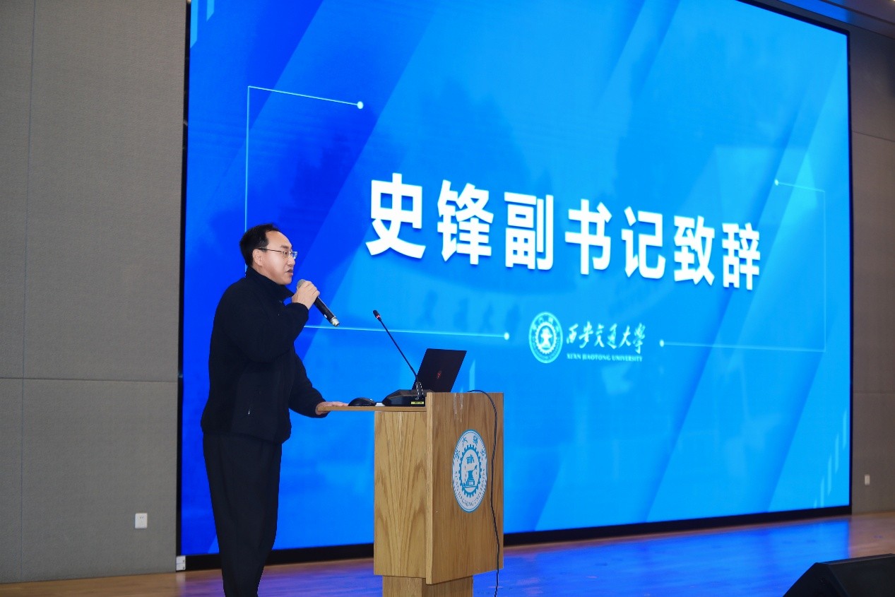 会议第二项、电信学部党委副书记史锋发表致辞。他强调,“党建+学术”是学院党建工作的特色方向,通过党建引领促进学术发展,通过学术互动推动师生思想提升。他要求各支部持续深化学习型党组织建设,将个人成长与学院发展紧密相连,以高站位、高标准推动学习、科研、育人工作的融合发展。