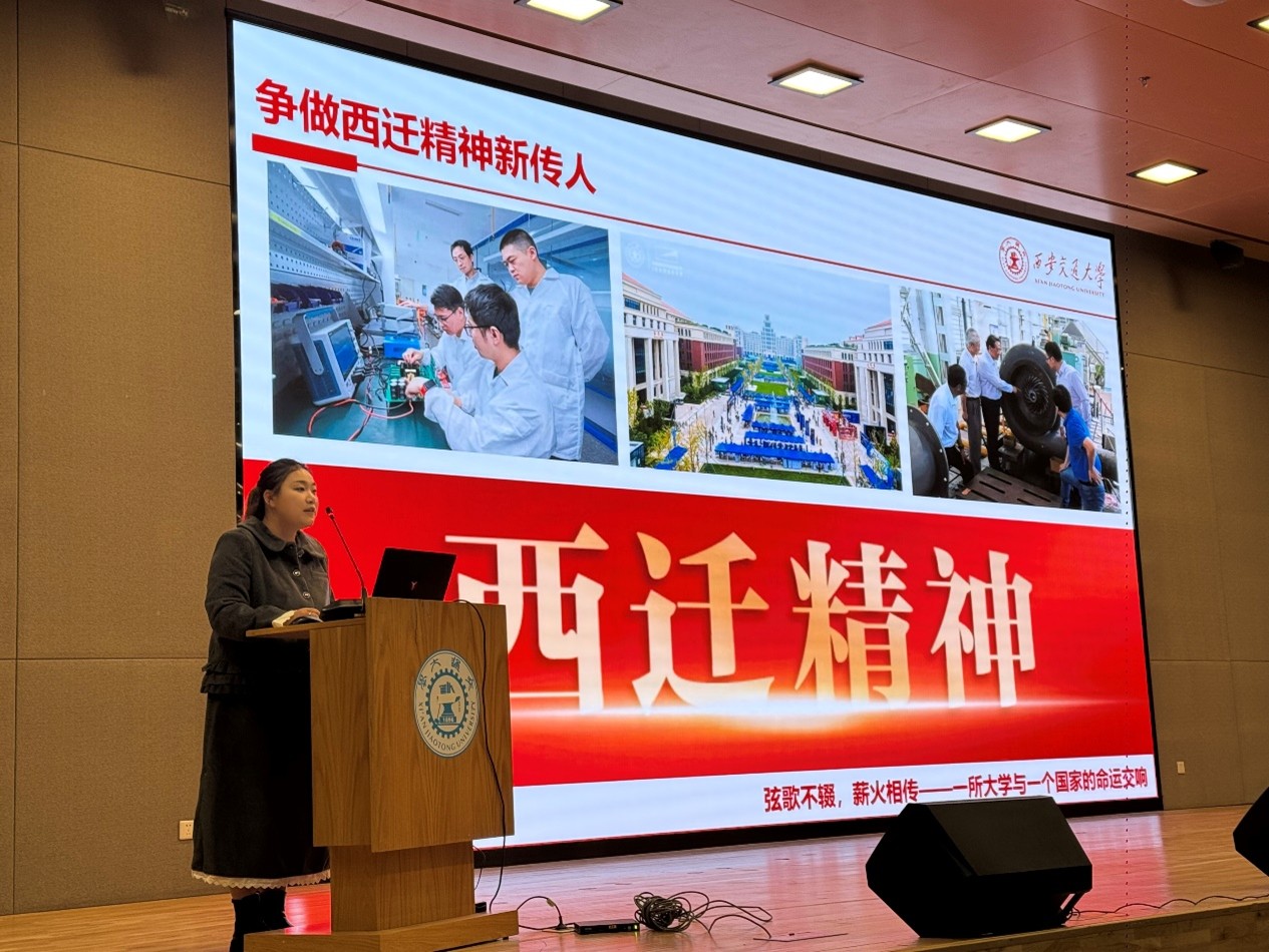 最后,“笃·信”宣讲团宣讲人杨以涛为全体党员开展“弦歌不辍,薪火相传”的主题宣讲。她从青年使命、科研理想与时代责任等角度切入,将西迁精神与青年成长实际相结合,用青春视角讲述信仰故事,激励在场同学进一步坚定理想信念、明确奋斗方向。