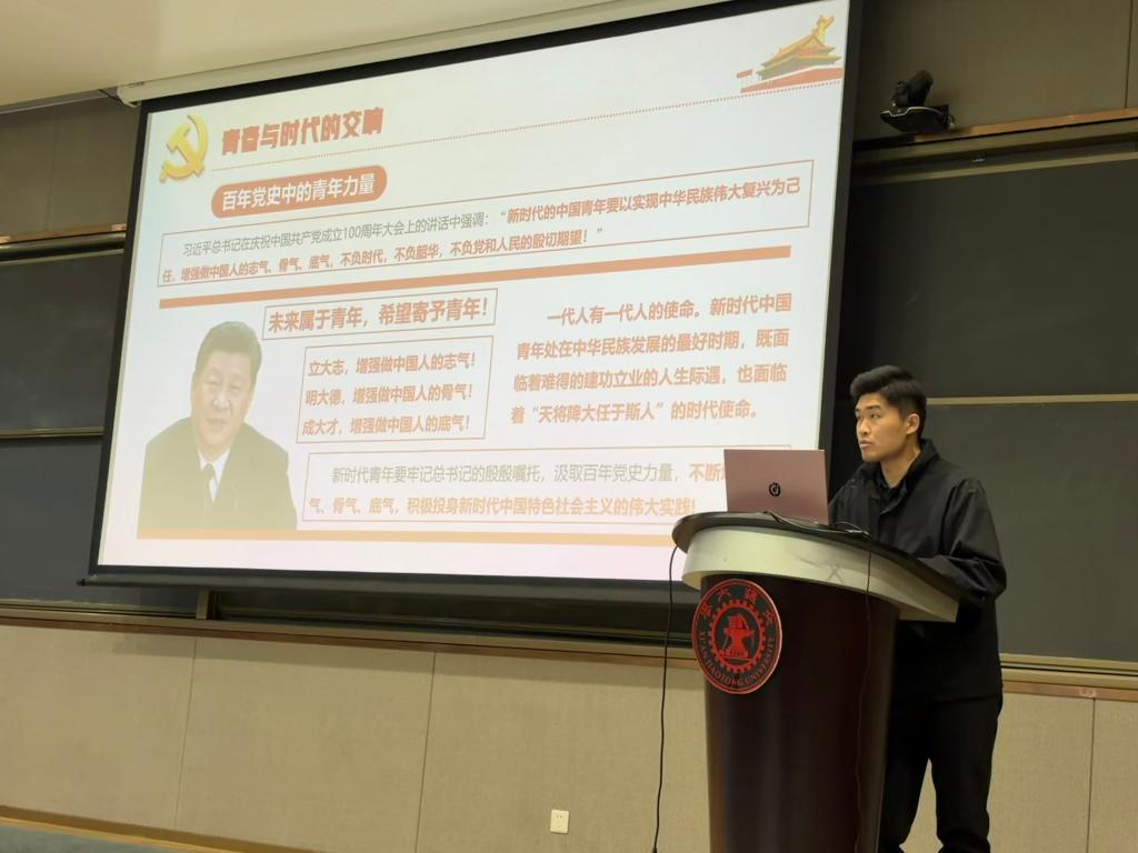 电信学部辅导员孙玮辰老师以“锤炼坚强党性 端正入党动机”为主题,通过与同学们的互动,活跃课堂氛围,帮助同学们提高自身悟性,明确共产党人的使命。