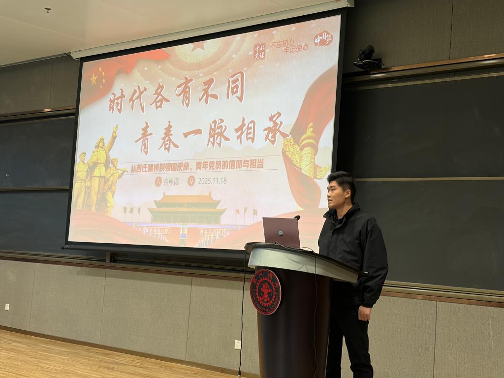电信学部团委副书记余恩得老师以“时代各有不同,青春一脉相承”为题,明确青年党员的信仰与担当。