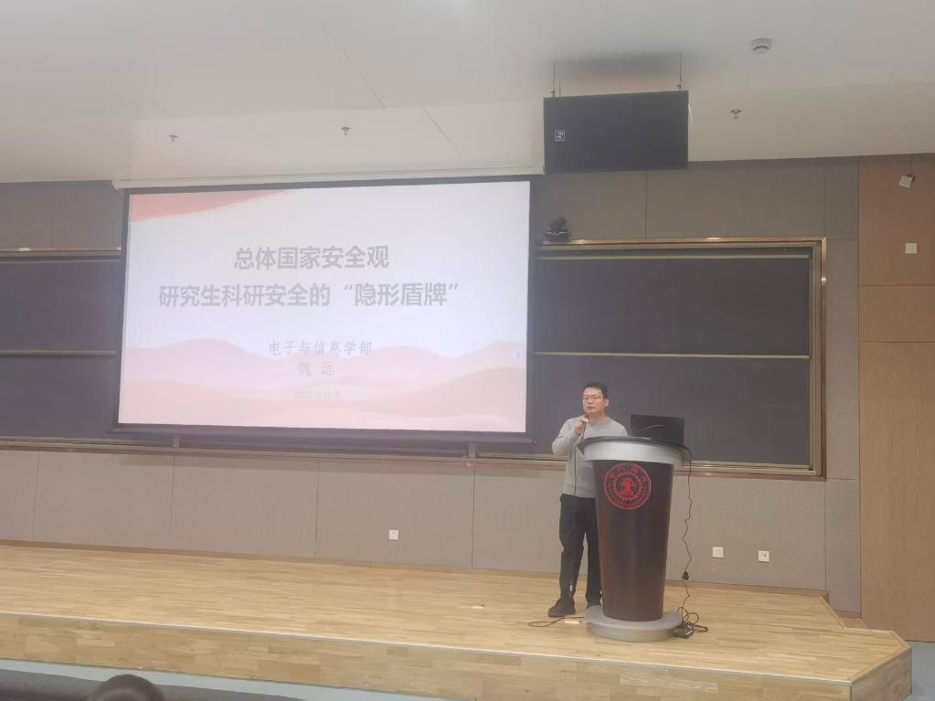 电信学部辅导员魏远老师以总体国家安全观为主题,向同学们讲述了研究生科研安全的“隐形盾牌”,加强同学们对安全问题的把控意识。