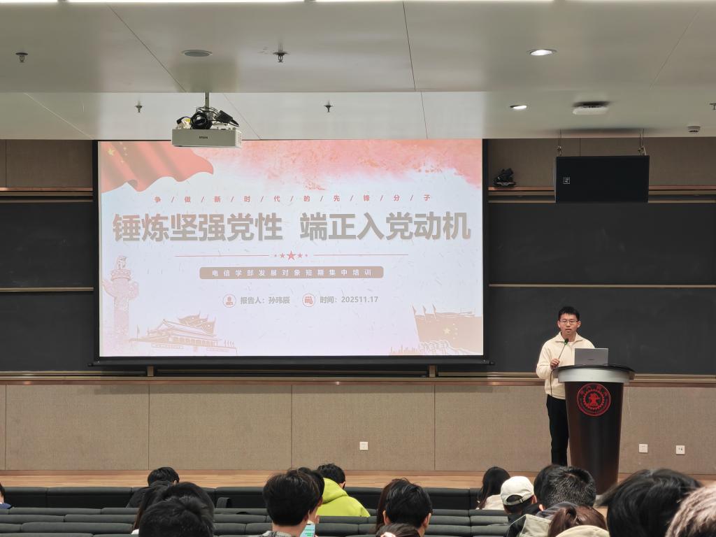 为深入贯彻落实习近平总书记关于青年工作的重要思想,以积极学习党的二十届三中、四中全会精神为主线,扎实推进团员和青年主题教育,结合电信学部学生工作实际,立足电子信息学科特色,全面提升发展对象思想认知水平和综合能力素质,电信学部党委开展2025年秋季发展对象党课培训工作。