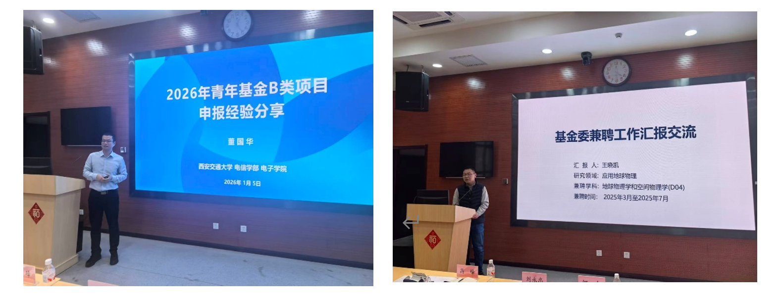 在专家经验分享环节,信通学院王晓凯教授结合其在基金委借调期间的工作经历,从基金项目申报须知、关键注意事项、申请书撰写技巧、形式审查要点等方面进行实操性讲解。他系统梳理了不同类型项目申报过程中易出现的共性问题与规避方法,内容详实、指导性强,为参会人员提供了宝贵的实践借鉴。电子学院董国华教授则以自身科研成长历程为切入点,分享了从青年基金申报到优青项目获批的完整经验,重点阐述了科研定位确立、研究故事构建、申报心态调整等关键环节,以真实案例为青年教师人才项目申报注入信心、提供思路。